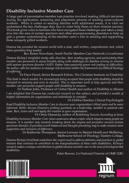A large part of preventative member care practice involved making difficult decisions during the application, screening and placement process of sending cross-cultural workers. When it comes to sending families with additional needs, it is vital we understand the key challenges they face in order help them on their mission journey. This book gives voice to families who have navigated these challenges and takes a deep dive into the area of autism spectrum and other neuroprocessing disorders to help us gain a greater understanding of the member carer's role in sending and supporting these uniquely gifted workers.
