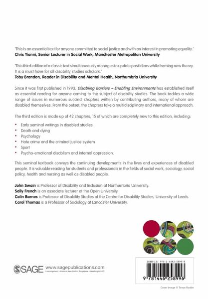 Since it was first published in 1993, Disabling Barriers, Enabling Environments has established itself as essential reading for anyone coming to the subject of disability studies. The book tackles a wide range of issues in numerous succinct chapters written by contributing authors, many of whom are disabled themselves. From the outset, the chapters take a multidisciplinary and international approach.