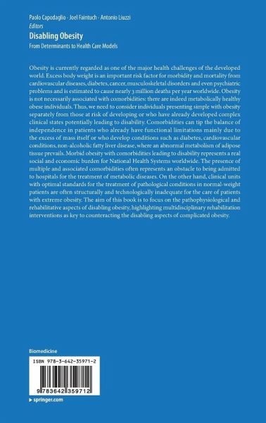 Obesity is currently regarded as one of the major health challenges of the developed world. Excess body weight is an important risk factor for morbidity and mortality from cardiovascular diseases, diabetes, cancer, musculoskeletal disorders and even psychiatric problems and is estimated to cause nearly 3 million deaths per year worldwide. Obesity is not necessarily associated with comorbidities: there are indeed metabolically healthy obese individuals. Thus, we need to consider individuals presenting simple with obesity separately from those at risk of developing or who have already developed complex clinical states potentially leading to disability. Comorbidities can tip the balance of independence in patients who already have functional limitations mainly due to the excess of mass itself or who develop conditions such as diabetes, cardiovascular conditions, non-alcoholic fatty liver disease, where an abnormal metabolism of adipose tissue prevails. Morbid obesity with comorbidities leading to disability represents a real social and economic burden for National Health Systems worldwide. The presence of multiple and associated comorbidities often represents an obstacle to being admitted to hospitals for the treatment of metabolic diseases. On the other hand, clinical units with optimal standards for the treatment of pathological conditions in normal-weight patients are often structurally and technologically inadequate for the care of patients with extreme obesity. The aim of this book is to focus on the pathophysiological and rehabilitative aspects of disabling obesity, highlighting multidisciplinary rehabilitation interventions as key to counteracting the disabling aspects of complicated obesity.