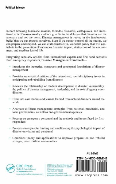 Using a case-based approach, Disaster Management Handbook is a comprehensive reference that shares firsthand accounts and theoretical analyses of disasters and the interrelated issues of disaster preparedness, response, recovery, and mitigation. It provides in-depth examinations of both man-made disasters--such as airplane crashes, computer network hacking, and terrorism--as well as earthquakes, floods, tsunamis and other natural or environmental disasters. This book provides the necessary understanding of concepts and offers helpful insights to assist practitioners in crafting constructive public policy that contributes to the prevention of such catastrophic events.