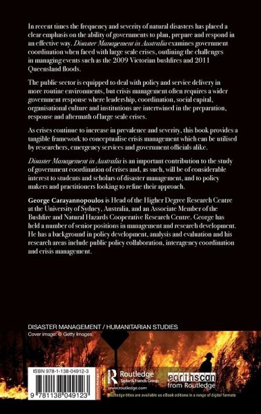 Disaster Management in Australia examines government coordination when faced with large scale crises, outlining the challenges in managing events such as the 2009 Victorian bushfires and 2011 Queensland floods.