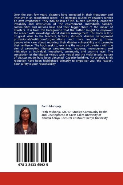 Over the past few years, disasters have increased in their frequency and intensity at an exponential speed. The damages caused by disasters cannot be over emphasised; they include loss of life, human suffering, economic instability and destruction of the environment. Individuals, families, communities and nations have had their bigger share of the impact of disasters. It is from this background that the author sought to empower the reader with knowledge about disaster management. This book will be of great value to the teachers, lectures, students, disaster management professionals/institutions/organizations, and more importantly, those people who care about reducing their disaster vulnerability and promote their resilience. The book seeks to examine the nature of disasters with the aim of promoting disaster preparedness, response, management and mitigation at individual, household, community and country level. The conception of the disaster vicious cycle model and the multifactorial nature of disaster model have been discussed. Capacity building, risk analysis & risk reduction have been highlighted primarily to empower you the reader . Your safety is your responsibility.