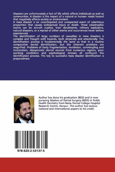 Disasters are unfortunately a fact of life which affects individuals as well as communities. A disaster is the impact of a natural or human- made hazard that negatively affects society or environment.A mass disaster is an unanticipated and unexpected event of calamitous proportion that causes widespread injury or death. These catastrophic events can be aircraft crashes, train derailments, refinery explosions, natural disasters, or a myriad of other events and occurrences never before experienced.The identification of large numbers of casualties in mass disasters is complex and fraught with hazards, both physically and emotionally. The identification process is fundamentally the same as that in a routine comparative dental identification, but the inherent problems are magnified. Problems of body fragmentation, mutilation, commingling and incineration, idiosyncratic dental records from numerous regions, poor working conditions and psychological stresses all confound the identification process. The key to successful mass disaster identification is preparedness.