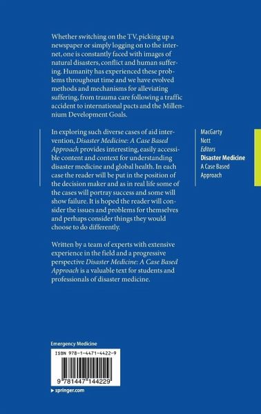 In exploring such diverse cases of aid intervention, Disaster Medicine: A Case Based Approach provides interesting, easily accessible content and context for understanding disaster medicine and global health. In each case the reader will be put in the position of the decision maker and as in real life some of the cases will portray success and some will show failure. It is hoped the reader will consider the issues and problems for themselves and perhaps consider things they would choose to do differently.