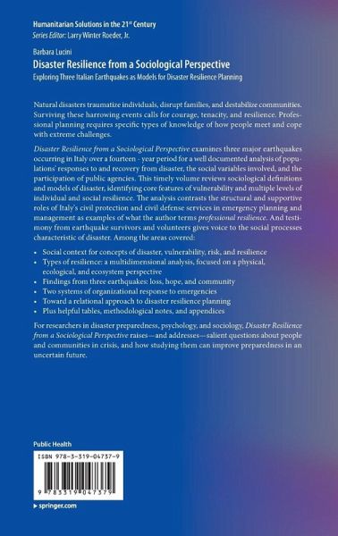 Disaster Resilience from a Sociological Perspective examines three major earthquakes occurring in Italy over a fourteen - year period for a well-documented analysis of populations' responses to and recovery from disaster, the social variables involved, and the participation of public agencies. This timely volume reviews sociological definitions and models of disaster, identifying core features of vulnerability and multiple levels of individual and social resilience. The analysis contrasts the structural and supportive roles of Italy's civil protection and civil defense services in emergency planning and management as examples of what the author terms professional resilience. And testimony from earthquake survivors and volunteers gives voice to the social processes characteristic of disaster. Among the areas covered: