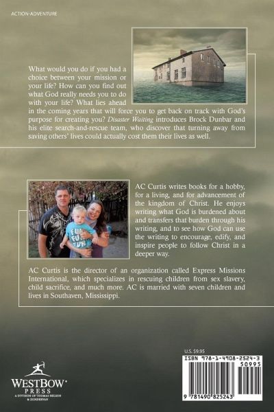 What would you do if you had a choice between your mission or your life? How can you find out what God really needs you to do with your life? What lies ahead in the coming years that will force you to get back on track with God's purpose for creating you? Disaster Waiting introduces Brock Dunbar and his elite search-and-rescue team, who discover that turning away from saving others' lives could actually cost them their lives as well.