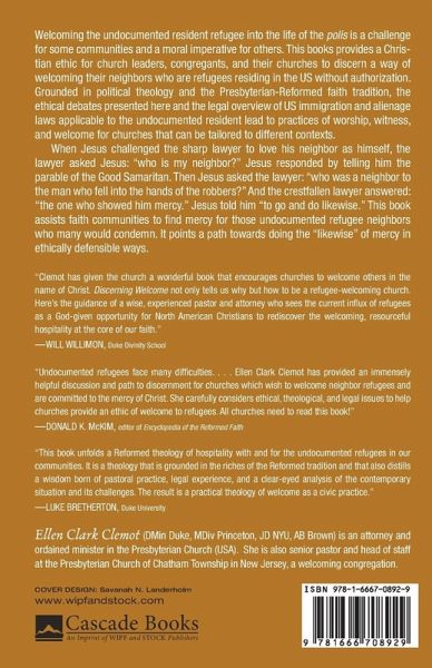 Gold Medal Winner, Illumination Award, 2023 Welcoming the undocumented resident refugee into the life of the polis is a challenge for some communities and a moral imperative for others. This books provides a Christian ethic for church leaders, congregants, and their churches to discern a way of welcoming their neighbors who are refugees residing in the US without authorization. Grounded in political theology and the Presbyterian-Reformed faith tradition, the ethical debates presented here and the legal overview of US immigration and alienage laws applicable to the undocumented resident lead to practices of worship, witness, and welcome for churches that can be tailored to different contexts. When Jesus challenged the sharp lawyer to love his neighbor as himself, the lawyer asked Jesus: ""who is my neighbor?"" Jesus responded by telling him the parable of the Good Samaritan. Then Jesus asked the lawyer: ""who was a neighbor to the man who fell into the hands of the robbers?"" And the crestfallen lawyer answered: ""the one who showed him mercy."" Jesus told him ""to go and do likewise."" This book assists faith communities to find mercy for those undocumented refugee neighbors who many would condemn. It points a path towards doing the ""likewise"" of mercy in ethically defensible ways.