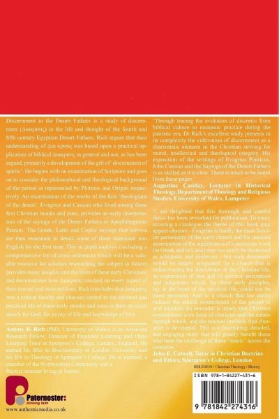 Discernment in the Desert Fathers by Antony Rich is in the Studies of Christian History and Thought Paternoster Monograph series.