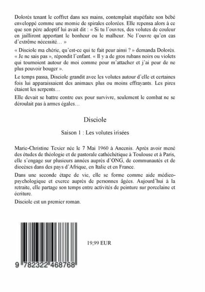 Disciole est un roman fantastique, une quête au travers des âmes et des histoires croisées d'une famille dont on découvre les ombres et les couleurs au rythme effréné d'une héroïne ballottée d'un sentiment à l'autre dans une tourmente magnifique de rêves-réalités , sans temp mort. Ce bijou aux avants goûts de cadavre exquis propulse le lecteur plus loin que lui même dans un tourbillon d'éveil magnifique qui répond a la question: qui aurions-nous pu être dans cette réalité si peu virtuelle?