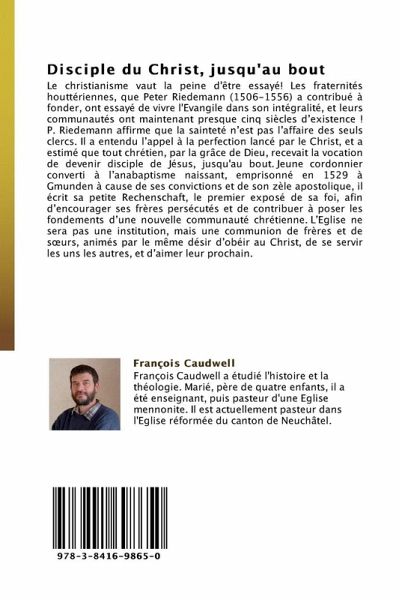 Le christianisme vaut la peine d'être essayé! Les fraternités houttériennes, que Peter Riedemann (1506-1556) a contribué à fonder, ont essayé de vivre l'Evangile dans son intégralité, et leurs communautés ont maintenant presque cinq siècles d existence ! P. Riedemann affirme que la sainteté n est pas l affaire des seuls clercs. Il a entendu l appel à la perfection lancé par le Christ, et a estimé que tout chrétien, par la grâce de Dieu, recevait la vocation de devenir disciple de Jésus, jusqu'au bout. Jeune cordonnier converti à l anabaptisme naissant, emprisonné en 1529 à Gmunden à cause de ses convictions et de son zèle apostolique, il écrit sa petite Rechenschaft, le premier exposé de sa foi, afin d encourager ses frères persécutés et de contribuer à poser les fondements d une nouvelle communauté chrétienne. L Eglise ne sera pas une institution, mais une communion de frères et de s urs, animés par le même désir d obéir au Christ, de se servir les uns les autres, et d aimer leur prochain.