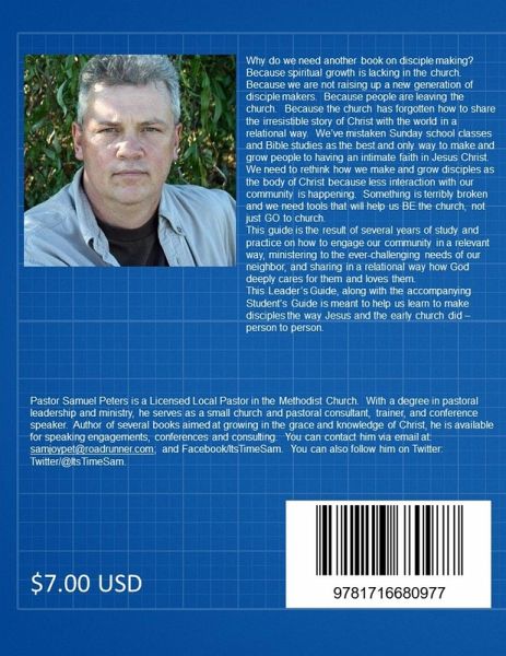 Why do we need another book on disciple making? Because spiritual growth is lacking in the church. Because we are not raising up a new generation of disciple makers. Because people are leaving the church. Because the church has forgotten how to share the irresistible story of Christ with the world in a relational way. We've mistaken Sunday school classes and Bible studies as the best and only way to make and grow people to having an intimate faith in Jesus Christ. We need to rethink how we make and grow disciples as the body of Christ because less interaction with our community is happening. Something is terribly broken and we need tools that will help us BE the church, not just GO to church. This guide is the result of several years of study and practice on how to engage our community in a relevant way, ministering to the ever-challenging needs of our neighbor, and sharing in a relational way how God deeply cares for them and loves them. This Students Guide is meant to help us learn to make disciples the way Jesus and the early church did - person to person.