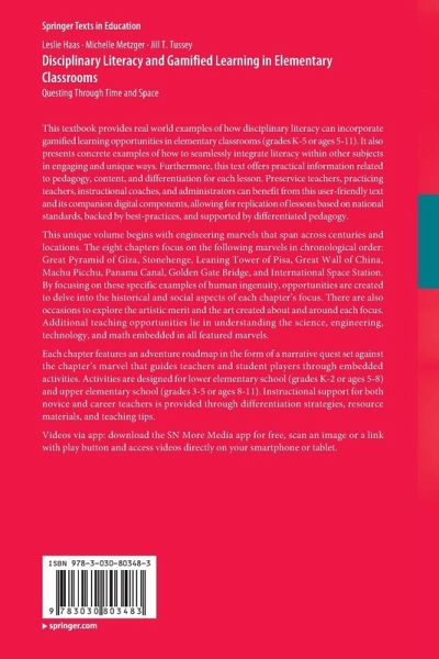 This textbook provides real world examples of how disciplinary literacy can incorporate gamified learning opportunities in elementary classrooms (grades K-5 or ages 5-11). It also presents concrete examples of how to seamlessly integrate literacy within other subjects in engaging and unique ways. Furthermore, this text offers practical information related to pedagogy, content, and differentiation for each lesson. Preservice teachers, practicing teachers, instructional coaches, and administrators can benefit from this user-friendly text and its companion digital components, allowing for replication of lessons based on national standards, backed by best-practices, and supported by differentiated pedagogy.