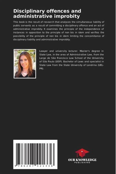 This book is the result of research that analyses the simultaneous liability of public servants as a result of committing a disciplinary offence and an act of administrative improbity. It examines the principle of the independence of instances in opposition to the principle of non bis in idem and verifies the possibility of the principle of non bis in idem limiting the concomitance of disciplinary liability and administrative improbity.