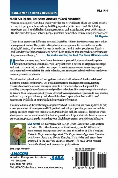 More than 30 years ago, performance expert and author Dick Grote developed a powerful, nonpunitive discipline system that turned a troubled Frito-Lay plant from a hotbed of employee sabotage and toxic relations into a productive, respectful environment. Grote's method spread to other companies, and gained national recognition with the 1995 release of the first edition of Discipline Without Punishment.
