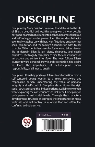 Discipline by Mary Brunton is a novel that delves into the life of Ellen, a beautiful and wealthy young woman who, despite her good-hearted nature and intelligence, becomes rebellious and self-indulgent as she grows older. Her reckless behavior eventually catches up with her. Her flirtations endanger her social reputation, and the family's financial ruin adds to her troubles. When her father loses his fortune and takes his own life in despair, Ellen is left alone, disgraced, and nearly penniless. The tragedy forces her to face the consequences of her actions and confront her flaws. The novel follows Ellen's journey toward personal growth and redemption. She begins to learn the importance of self-discipline, moral responsibility, and inner strength. Discipline ultimately portrays Ellen's transformation from a self-centered young woman to a more self-aware and responsible person, underscoring the value of personal integrity and self-control. Discipline also critiques the rigid social structures and the limited options available to women, while exploring the consequences of lack of self-discipline on both personal and social levels. Through the character's development, Brunton encourages the importance of moral fortitude and self-control in a world that can often feel confining and oppressive.
