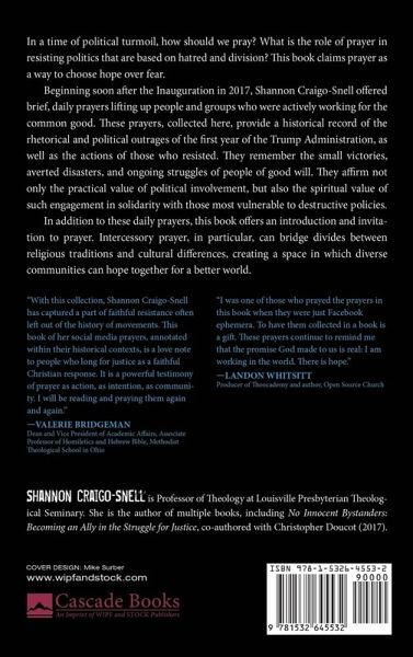 In a time of political turmoil, how should we pray? What is the role of prayer in resisting politics that are based on hatred and division? This book claims prayer as a way to choose hope over fear. Beginning soon after the Inauguration in 2017, Shannon Craigo-Snell offered brief, daily prayers lifting up people and groups who were actively working for the common good. These prayers, collected here, provide a historical record of the rhetorical and political outrages of the first year of the Trump Administration, as well as the actions of those who resisted. They remember the small victories, averted disasters, and ongoing struggles of people of good will. They affirm not only the practical value of political involvement, but also the spiritual value of such engagement in solidarity with those most vulnerable to destructive policies. In addition to these daily prayers, this book offers an introduction and invitation to prayer. Intercessory prayer, in particular, can bridge divides between religious traditions and cultural differences, creating a space in which diverse communities can hope together for a better world.