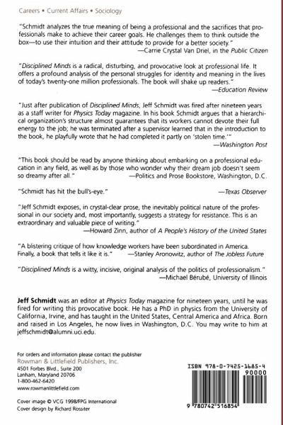 This book details the battle one must fight to be an independent thinker, showing how an honest reassessment of what it means to be a professional in today's corporate society can be remarkably liberating. Poignant examples from the world of work reveal the workplace as a battleground for the very identity of the individual. Schmidt contends that professional work is inherently political-that the unstated duty of professionals is to maintain strict "ideological discipline." Career dissatisfaction evolves as workers lose control over the political component of their creative work. After reading this insightful book, no one who works for a living will ever think the same way about their job. Jeff Schmidt lives in Washington, D.C., where he is an editor for Physics Today.