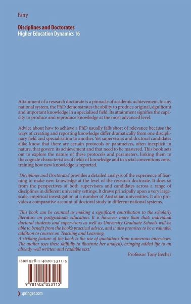 'Disciplines and Doctorates' provides a detailed analysis of the experience of learning to make new knowledge at the level of the research doctorate. It does so from the perspectives of both supervisors and candidates across a range of disciplines in different university settings. It draws principally upon a very large-scale, empirical investigation at a number of Australian universities. It also provides a comparative account of doctoral study in different national systems.