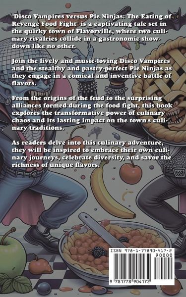 "Disco Vampires versus Pie Ninjas: The Eating of Revenge Food Fight" is a captivating tale set in the quirky town of Flavorville, where two culinary rivalries collide in a gastronomic showdown like no other. Join the lively and music-loving Disco Vampires and the stealthy and pastry-perfect Pie Ninjas as they engage in a comical and inventive battle of flavors. From the origins of the feud to the surprising alliances formed during the food fight, this book explores the transformative power of culinary chaos and its lasting impact on the town's culinary traditions. As readers delve into this culinary adventure, they will be inspired to embrace their own culinary journeys, celebrate diversity, and savor the richness of unique flavors.