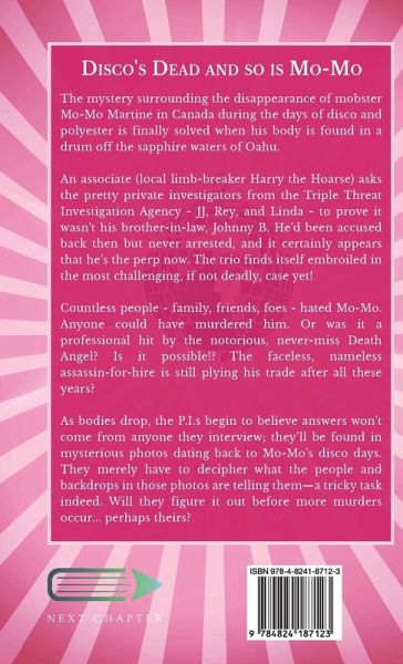 The mystery surrounding the disappearance of mobster Mo-Mo Martine in Canada during the days of disco and polyester is finally solved when his body is found in a drum off the sapphire waters of Oahu. An associate (local limb-breaker Harry the Hoarse) asks the pretty private investigators from the Triple Threat Investigation Agency - JJ, Rey, and Linda - to prove it wasn't his brother-in-law, Johnny B. He'd been accused back then but never arrested, and it certainly appears that he's the perp now. The trio finds itself embroiled in the most challenging, if not deadly, case yet! Countless people - family, friends, foes - hated Mo-Mo. Anyone could have murdered him. Or was it a professional hit by the notorious, never-miss Death Angel? Is it possible!? The faceless, nameless assassin-for-hire is still plying his trade after all these years? As bodies drop, the P.I.s begin to believe answers won't come from anyone they interview; they'll be found in mysterious photos dating back to Mo-Mo's disco days. They merely have to decipher what the people and backdrops in those photos are telling them-a tricky task indeed. Will they figure it out before more murders occur... perhaps theirs?