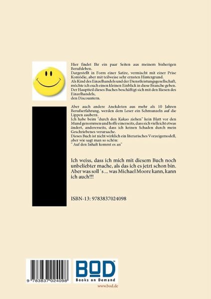 Satirisch erzählte Erlebnisse aus dem Bereich des Einzelhandels.Vor allem der Bereich "Discounter" wird ordentlich durch den Kakao gezogen und einige Wahrheiten ans Licht gebracht. Kunden, sowie Mitarbeiter werden sich sicherlich wiedererkennen.
