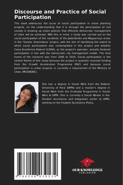 This book addresses the issue of social participation in urban planning projects, on the understanding that it is through the participation of civil society in drawing up urban policies that effective democratic management of cities will be achieved. With this in mind, a study was carried out on the social participation of the residents of the Jaderlândia and Maguariaçú areas in the 'Sanear Ananindeua' project, with the aim of identifying the extent to which social participation was contemplated in this project and whether Caixa Econômica Federal (CAIXA), as the project's operator, actually fostered participation in line with the democratic city management model. The time frame of the research was from 2006 to 2010. Social participation is the central theme of this study because the project in question received funding from the Growth Acceleration Programme (PAC) and because social participation in urban projects is currently a requirement of the Ministry of Cities (MCIDADES).