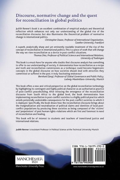 This book offers a new and critical perspective on the global reconciliation technology by highlighting its contingent and highly political character as an authoritative practice of post-conflict peacebuilding. After retracing the emergence of the reconciliation discourse from South Africa to the global level, the book demonstrates how implementing reconciliation in post-conflict societies is a highly political practice which entails potentially undesirable consequences for the post-conflict societies to which it is deployed. Specifically, the book shows how the reconciliation discourse brings about the marginalisation and neutralisation of political claims and identities of local post-conflict populations by producing these societies as being composed of the 'victims' and 'perpetrators' of past human rights violations which are first and foremost in need of reconciliation and healing. This book will interest students and teachers of transitional justice and international relations.