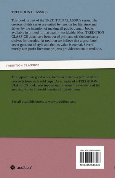 This book is part of the TREDITION CLASSICS series. The creators of this series are united by passion for literature and driven by the intention of making all public domain books available in printed format again - worldwide. At tredition we believe that a great book never goes out of style. Several mostly non-profit literature projects provide content to tredition. To support their good work, tredition donates a portion of the proceeds from each sold copy. As a reader of a TREDITION CLASSICS book, you support our mission to save many of the amazing works of world literature from oblivion.