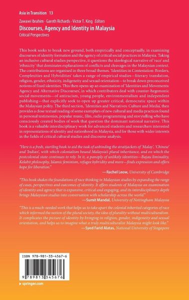 "This book shakes the foundations of race thinking in Malaysian studies by expanding the range of cases, perspectives and outcomes of identity. It offers students of Malaysia an examination of identity and agency that is expansive, critical and engaging, and its interdisciplinary depth brings Malaysian studies into conversation with scholarship across the world".