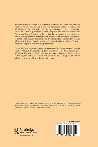 Interdisciplinary in scope, this collection examines the varied and complex ways in which early modern Europeans imagined, discussed and enacted friendship, a fundamentally elective relationship between individuals otherwise bound in prescribed familial, religious and political associations. Contributors include scholars of British, French, Italian and Spanish culture, offering literary, historical, religious, and political perspectives. Each chapter comprises a case study of specific contexts, narratives and/or lived friendships.