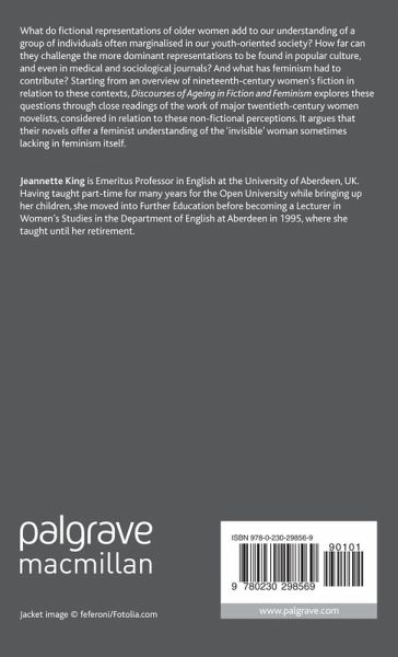 This book explores the way older women are represented in society. Through close readings of novels by major 20th century novelists, compared with the more dominant representations of female ageing to be found in popular culture it suggests that they offer a feminist understanding of the 'invisible' woman sometimes lacking in feminism itself.