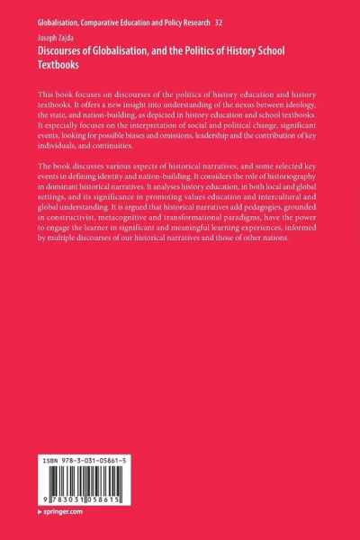 This book focuses on discourses of the politics of history education and history textbooks. It offers a new insight into understanding of the nexus between ideology, the state, and nation-building, as depicted in history education and school textbooks. It especially focuses on the interpretation of social and political change, significant events, looking for possible biases and omissions, leadership and the contribution of key individuals, and continuities. The book discusses various aspects of historical narratives, and some selected key events in defining identity and nation-building. It considers the role of historiography in dominant historical narratives. It analyses history education, in both local and global settings, and its significance in promoting values education and intercultural and global understanding. It is argued that historical narratives add pedagogies, grounded in constructivist, metacognitive and transformational paradigms, havethe power to engage the learner in significant and meaningful learning experiences, informed by multiple discourses of our historical narratives and those of other nations.
