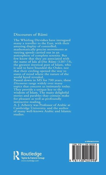A translation of a selection of discourses by Persia's great mystic and poet, Jalal-al-Din Rumi. Rumi was the principal inspiration behind the Sufi order, the Mawlawiyya, which many claim he founded.