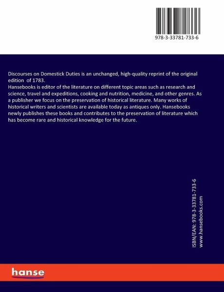 Discourses on Domestick Duties is an unchanged, high-quality reprint of the original edition of 1783.