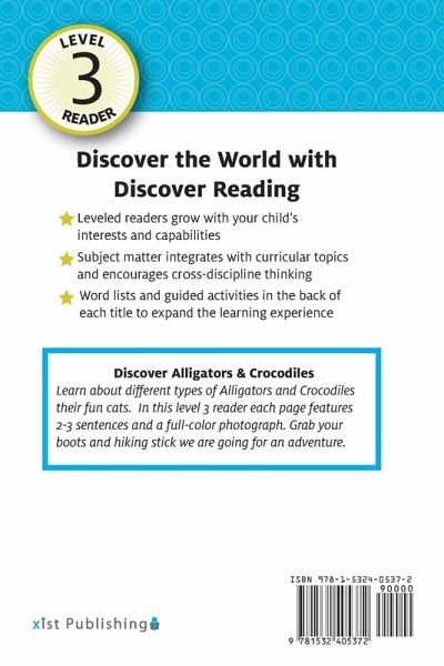Discover Reading Level 3 Nonfiction Reader Learn all about alligators and crocodiles in this nonfiction reader. Students will develop vocabulary and understanding of the species and their characteristics. Sample Text: Alligators and crocodiles look very similar and are sometimes difficult to tell apart. Alligators have shorter heads, more "U-shaped" snouts and only their top teeth are visible when their mouths are closed. Crocodiles have longer heads and more "V-shaped" snouts. If you look at them from the side, when their mouths are shut most of their teeth are visible. Crocodiles are also much more aggressive than alligators.