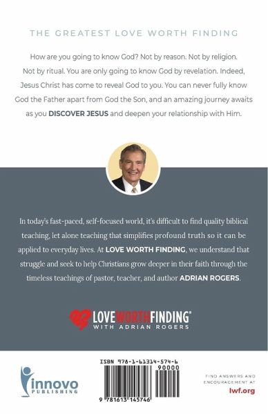 THE GREATEST LOVE WORTH FINDING How are you going to know God? Not by reason. Not by religion. Not by ritual. You are only going to know God by revelation. Indeed, Jesus Christ has come to reveal God to you. You can never fully know God the Father apart from God the Son, and an amazing journey awaits as you DISCOVER JESUS and deepen your relationship with Him. In today's fast-paced, self-focused world, it's difficult to find quality biblical teaching, let alone teaching that simplifies profound truth so it can be applied to everyday lives. At LOVE WORTH FINDING, we understand that struggle and seek to help Christians grow deeper in their faith through the timeless teachings of pastor, teacher, and author ADRIAN ROGERS. INNOVO PUBLISHING is a conservative Christian publisher, providing full-service publishing services for Christian authors, artists & ministries through: -ABOUT THE PUBLISHER: Innovo Publishing LLC is an independent publisher of Christian and wholesome titles, and is located near Memphis, TN. Since 2008, Innovo has published quality books, eBooks, audiobooks, music, screenplays, film, and online and physical curricula that support the Great Commission, equip believers, and help create a positive Christian worldview. Innovo's capabilities and global reach provide Christian authors, artists, and ministries access to the world for Christ. To learn more about Innovo Publishing, visit our website at innovopublishing.com. To connect with other Christian Creatives and to learn best practices for creating, publishing, marketing, and selling Christian titles, visit the Christian Publishing Portal at cpportal.com.