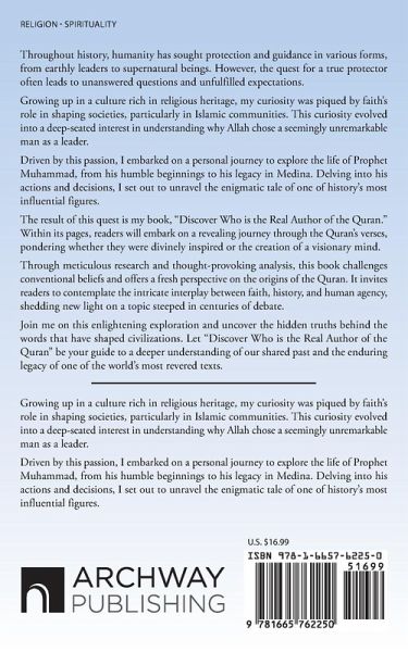 Who authored the Quran: a divine source or a visionary mind shaped by history, culture, and personal experience? In Discover Who is the Real Author of the Quran, Hassan Cyrus presents a deeply personal and rigorously researched investigation into the authorship of the Quran. Fueled by a lifelong curiosity about faith, Islamic history, and the life of Prophet Muhammad, Cyrus takes readers on a journey that questions long-held religious assumptions and probes the psychological and historical context behind Islam's sacred text. Growing up in a society steeped in religious tradition, the author was drawn to the question: Why would Allah choose a man plagued by health struggles, emotional turmoil, and limited influence to lead a spiritual revolution? This book explores that mystery by critically analyzing Muhammad's biography, his mental health, and his interactions with Christian, Jewish, and Zoroastrian influences. It examines the origins of key Quranic themes including heaven and hell, divine judgment, messianic prophecy, and more through the lens of comparative religion and textual analysis. Cyrus offers a compelling argument that the Quran may be less a divine dictation and more a masterfully crafted work, born from strategic leadership, literary prowess, and religious synthesis. Designed for critical thinkers, reform-minded Muslims, and those exploring religious critique, this book encourages readers to reframe what they've been taught. With its bold thesis and evidence-backed insights, Discover Who is the Real Author of the Quran challenges, enlightens, and invites reflection. Step into the debate. Explore the roots of belief. Discover the story behind the scripture.