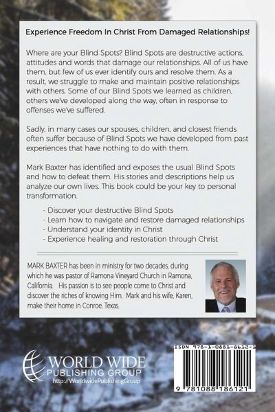 Each of us has blind spots that can hamper our making and maintaining meaningful relationships. Although over time we may come to recognize them, they are typically hidden, unseen by us, which is why we call them "blind spots." They are aspects of our behavior that do damage to our relationships with others. Some of us are continually reminded of them by others, but we either refuse to see them or simply don't know what to do to eliminate them from our lives. If left alone, they develop and in time can do terrible damage to ourselves and those we love. In this book, author Mark Baxter reveals seventeen of the most common blind spots that foul relationships, and offers examples of how they do and how we can identify them, and process them out of our lives so we can be more Christlike. This book could quite well save a meaningful relationship that you have. Please don't wait until it's too late. God's plan is to conform you to the image of His Son, Jesus. Allow this to be your guidebook, and Mark to be your guide. Rid yourself today of debilitating blind spots today. Get your copy today.