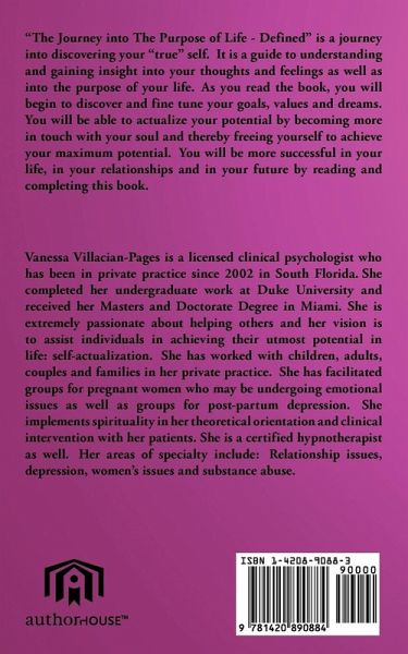 "The Journey into The Purpose of Life - Defined" is a journey into discovering your "true" self. It is a guide to understanding and gaining insight into your thoughts and feelings as well as into the purpose of your life. As you read the book, you will begin to discover and fine tune your goals, values and dreams. You will be able to actualize your potential by becoming more in touch with your soul and thereby freeing yourself to achieve your maximum potential. You will be more successful in your life, in your relationships and in your future by reading and completing this book.