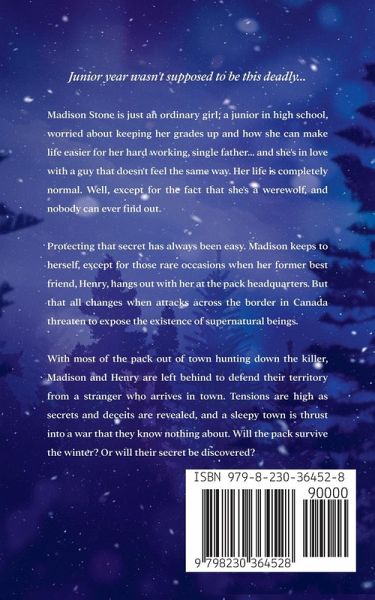 Junior year wasn't supposed to be this deadly... To survive in a world that casts out those who are different, werewolves have one cardinal rule - to protect the pack, they must conceal their true identities. Their life depends on it. Madison has become an expert at that. When she's not in school, she tries to keep her interactions with humans to a minimum. After all, such a big secret makes it almost impossible to keep up with friends, and the protection of her pack is her top priority. Then one phone call threatens to change everything, forever. Authorities in neighbouring Canada have discovered mutilated remains, and while they initially blame animals, the pack knows better. Canada isn't their territory, but this killer isn't being discreet, and exposure is a risk to supernatural beings everywhere. As the pack hunts for the killer, Madison is left to protect the innocent people of her town from the ever-increasing danger. To do that, she must partner with new allies-but can they be trusted?