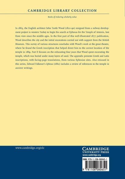 In 1863, the English architect John Turtle Wood (1821-90) resigned from a railway development project in western Turkey to begin his search at Ephesus for the Temple of Artemis, lost from view since the middle ages. In the first part of this well-illustrated 1877 publication, Wood describes the city and the initial excavations carried out with support from the British Museum. This survey of various structures concludes with Wood's work at the great theatre, where he found the Greek inscription that helped direct him to the correct location of the temple in 1869. Part II focuses on the exhausting four years that Wood spent excavating the temple, which was buried under many layers of sand. The appendix presents Greek and Latin inscriptions, with facing-page translations, from various Ephesian sites. Also reissued in this series, Edward Falkener's Ephesus (1862) includes a review of references to the temple in ancient writings.
