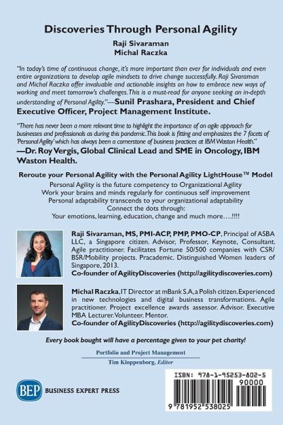 This book explores the nuances of different aspects of agility on a personal level. Agility brings personal value, leadership navigation, managing the tides of knowledge, and putting on the captain's hat of resilience. As the winds change and the tides swell high, the Personal Agility Lighthouse (PALH¿) model in this book will guide you to safe shores. Navigating through the seven colors of agility such as education, change, emotional, political, cerebral, learning, and outcomes agilities, the anchor is dropped effortlessly. It is built on these seven competencies, and by using the Individual Personal Agility self-analysis assessment (see Appendix), swaying personal visions leading them up to organizational goals. Taking personal agility as the future competency with an agile mindset is a crucial starting point to transform yourself. Focusing your personal agility journey on outcomes and end-to-end customer experiences ensures value delivery. Especially within the elements of the VUCA environment where revised goals are the norm. Driving changes in the right direction leads you to the stable grounds of your personal vision. It prepares you to tread the long roads of transitions/transformations, which is a vital requisite for changes in any organization. Measuring performance metrics aptly is the rudder of strategy management and stability. Organizational goals and personal development are the strong pillars that will steer you to your organizational agility, getting you ready for opportunities and changes when your company trademark needs it. Agile practices and perspectives cut through impact and quality of personal and group knowledge. Take a journey on a Personal Agility Boat to visualize options, alternatives, and opportunities. Visualization is the way to your shore's lighthouse.