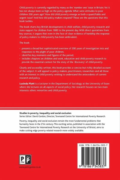 This book charts key British developments in child welfare, child poverty research and state support for children from 1800 to the present day. With direct quotations from key sources, it argues that even in the face of clear evidence of hardship the response of policy makers to child poverty has been ambivalent.