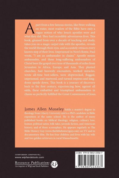 Apart from a few famous stories, like Peter walking on water, most readers of the Bible have only a vague notion of who Jesus's apostles were and what they did. They had incredibly adventurous lives. This book, gleaned from over a decade of teaching and study, takes you on a magic carpet ride with the apostles, reveals the world through their eyes, and accurately retraces every known step of their lives. Imprisoned in Nero's Rome, Paul wrote, ""I am an ambassador in chains."" Apostle means ambassador, and these long-suffering ambassadors of Christ bore the gospel over tens of thousands of miles from Jerusalem to Africa, Europe, and Asia. They planted churches, had heavenly encounters, worked miracles, wrote all-time best-sellers, were shipwrecked, flogged, imprisoned, and martyred, and turned empires and kingdoms upside down. This book is a journey of discovery back to the first century, experiencing how, against all odds, these embattled and triumphant ambassadors in chains so perfectly fulfilled the Great Commission of Jesus.
