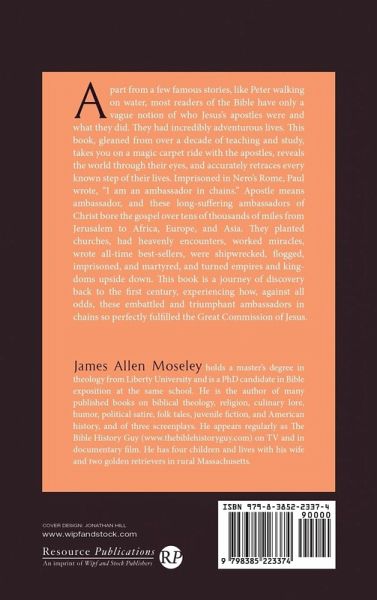 Apart from a few famous stories, like Peter walking on water, most readers of the Bible have only a vague notion of who Jesus's apostles were and what they did. They had incredibly adventurous lives. This book, gleaned from over a decade of teaching and study, takes you on a magic carpet ride with the apostles, reveals the world through their eyes, and accurately retraces every known step of their lives. Imprisoned in Nero's Rome, Paul wrote, ""I am an ambassador in chains."" Apostle means ambassador, and these long-suffering ambassadors of Christ bore the gospel over tens of thousands of miles from Jerusalem to Africa, Europe, and Asia. They planted churches, had heavenly encounters, worked miracles, wrote all-time best-sellers, were shipwrecked, flogged, imprisoned, and martyred, and turned empires and kingdoms upside down. This book is a journey of discovery back to the first century, experiencing how, against all odds, these embattled and triumphant ambassadors in chains so perfectly fulfilled the Great Commission of Jesus.
