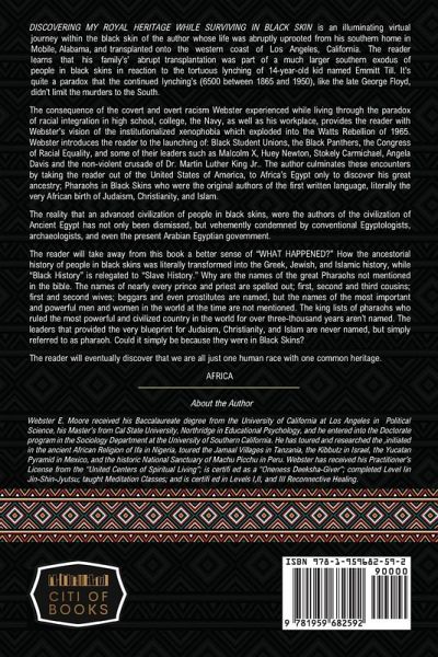 Surviving in Black Skin is an illuminating virtual journey within the black skin of the author whose life was abruptly uprooted from his southern home in Mobile, Alabama, and transplanted onto the western coast of Los Angeles, California. The reader learns that his family's' abrupt transplantation was part of a much larger southern exodus of people in black skins in reaction to the tortuous lynching of 14-year-old kid named Emmitt Till. It's quite a paradox that the continued lynching's (6500 between 1865 and 1950), like the late George Floyd, didn't limit the murders to the South. The consequence of the covert and overt racism Webster experienced while living through the paradox of racial integration in high school, college, the Navy, as well as his workplace, provides the reader with Webster's vision of the institutionalized xenophobia which exploded into the Watts Rebellion of 1965. Webster introduces the reader to the launching of: Black Student Unions, the Black Panthers, the Congress of Racial Equality, and some of their leaders such as Malcolm X, Huey Newton, Stokely Carmichael, Angela Davis and the non-violent crusade of Dr. Martin Luther King Jr.. The author culminates these encounters by taking the reader out of the United States of America, to Africa's Egypt only to discover his great ancestry; Pharaohs in Black Skins who were the original authors of the first written language, literally the very African birth of Judaism, Christianity, and Islam. The reality that an advanced civilization of people in black skins, were the authors of the civilization of Ancient Egypt has not only been dismissed, but vehemently condemned by conventional Egyptologists, archaeologists, and even the present Arabian Egyptian government. The reader will take away from this book a better sense of "WHAT HAPPENED?" How the ancestorial history of people in black skins was literally transformed into the Greek, Jewish, and Islamic history, while "Black History" is relegated to "Slave History." Why are the names of the great Pharaohs not mentioned in the bible. The names of nearly every prince and priest are spelled out; first, second and third cousins; first and second wives; beggars and even prostitutes are named, but the names of the most important and powerful men and women in the world at the time are not mentioned. The king lists of pharaohs who ruled the most powerful and civilized country in the world for over three-thousand years aren't named. The leaders that provided the very blueprint for Judaism, Christianity, and Islam are never named, but simply referred to as pharaoh. Could it simply be because they were in Black Skins ? The reader will eventually discover that we are all just one human race with one common heritage.AFRICA