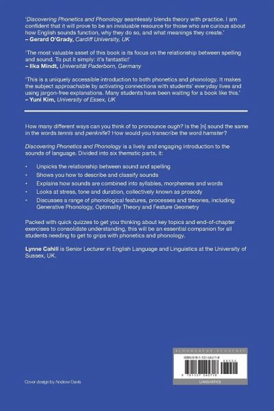 Written in a lively and engaging style, this brand new textbook provides students with a friendly yet authoritative introduction to the sounds of language. Divided into six thematic parts, it unpicks the relationship between sound and spelling before showing you how to describe and classify sounds. It then explains how sounds are combined into syllables, morphemes and words, and looks at stress, tone and duration, collectively known as prosody. It concludes with a discussion of a range of phonological features, processes and theories, including Generative Phonology, Optimality Theory and Feature Geometry. Quizzes prompt students to reflect on what they already know about the subject, and end-of-chapter exercises enable them to consolidate their knowledge before moving on. This book will be essential reading for undergraduates studying phonetics and phonology as part of an English Language or Linguistics degree.