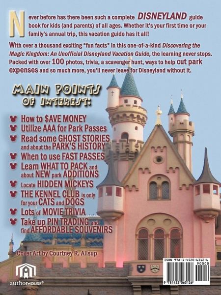 Never before has there been such a complete unofficial Disneyland guidebook for kids of all ages. Whether you are traveling for the first time or it's your family's annual trip, this vacation guide has it all! Discover the many exciting "fun facts" with this one-of-a-kind book, Discovering the Magic Kingdom: An Unofficial Disneyland Vacation Guide. Packed with ways to cut expenses such as planning your trip through AAA, how to plan a Disney birthday or wedding, hidden Mickey locations, a scavenger hunt, history of the parks, ghost stories, how to utilize Fast Passes, over 100 photos and much more, you'll never leave for Disneyland without it!