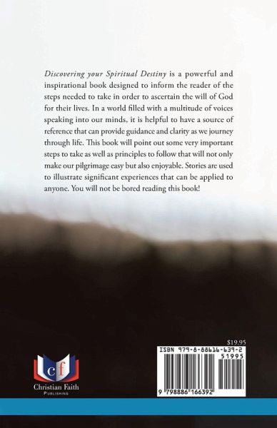 Discovering your Spiritual Destiny is a powerful and inspirational book designed to inform the reader of the steps needed to take in order to ascertain the will of God for their lives. In a world filled with a multitude of voices speaking into our minds, it is helpful to have a source of reference that can provide guidance and clarity as we journey through life. This book will point out some very important steps to take as well as principles to follow that will not only make our pilgrimage easy but also enjoyable. Stories are used to illustrate significant experiences that can be applied to anyone. You will not be bored reading this book!