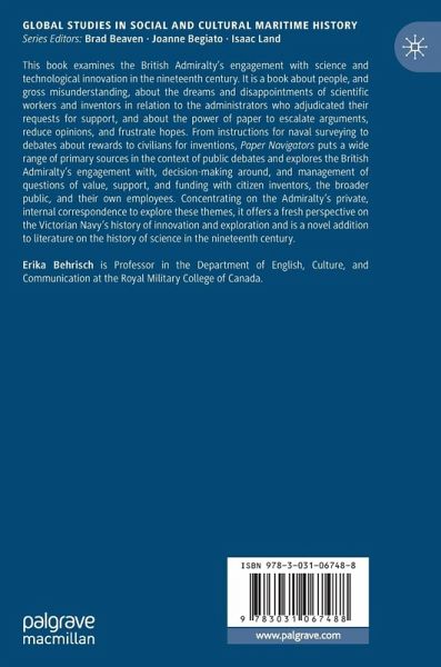 This book examines the British Admiralty's engagement with science and technological innovation in the nineteenth century. It is a book about people, and gross misunderstanding, about the dreams and disappointments of scientific workers and inventors in relation to the administrators who adjudicated their requests for support, and about the power of paper to escalate arguments, reduce opinions, and frustrate hopes. From instructions for naval surveying to debates about rewards to civilians for inventions, Paper Navigators puts a wide range of primary sources in the context of public debates and explores the British Admiralty's engagement with, decision-making around, and management of questions of value, support, and funding with citizen inventors, the broader public, and their own employees. Concentrating on the Admiralty's private, internal correspondence to explore these themes, it offers a fresh perspective on the Victorian Navy's history of innovation and exploration and is a novel addition to literature on the history of science in the nineteenth century.